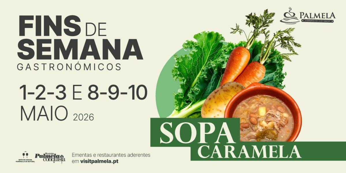 Nos fins de semana de 1 a 3 e 8 a 10 de maio, 7 restaurantes do concelho apresentam a tradicional Sopa Caramela nas suas ementas, em mais uma edição dos Fins de Semana Gastronómicos de Palmela.